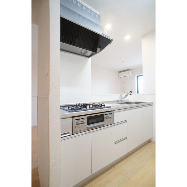 | 設備 | 室内洗濯機置場、追焚機能、シャワー、バス・トイレ別、トイレ、洗髪洗面化粧台、洗面台、温水洗浄便座、洗面所独立、浴室乾燥機、カウンタキッチン、システムキッチン、ガスコンロ付、3口以上コンロ、収納スペース、ウォークインクローゼット、クローゼット、シューズボックス、給湯、プロパンガス、複層ガラス、フローリング、室内物干し、エアコン、エアコン2台以上、BS端子、モニタ付インターホン、バルコニー、駐輪場、上水道、下水道 | ||||