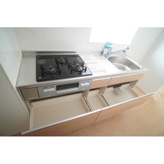 | 設備 | 室内洗濯機置場、追焚機能、シャワー、バス・トイレ別、トイレ、洗髪洗面化粧台、洗面台、温水洗浄便座、洗面所独立、浴室乾燥機、カウンタキッチン、システムキッチン、3口以上コンロ、収納スペース、床下収納、ウォークインクローゼット、シューズボックス、照明器具、給湯、都市ガス、複層ガラス、フローリング、シャッター雨戸、室内物干し、エアコン、エアコン2台以上、全居室エアコン、BS端子、オートロック、モニタ付インターホン、モニタ付オートロック、防犯カメラ、バルコニー、宅配BOX、駐輪場、上水道、下水道 | ||||