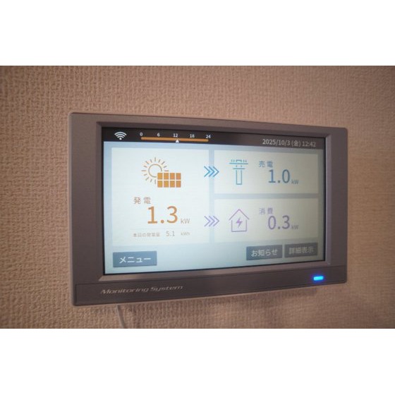 設備 | 室内洗濯機置場、シャワー、バス・トイレ別、トイレ、洗髪洗面化粧台、洗面台、温水洗浄便座、洗面所独立、浴室乾燥機、カウンタキッチン、システムキッチン、ガスコンロ付、3口以上コンロ、収納スペース、ウォークインクローゼット、クローゼット、シューズボックス、照明器具、給湯、都市ガス、フローリング、室内物干し、太陽光発電システム、エアコン、エアコン2台以上、BS端子、オートロック、モニタ付インターホン、カードキー、防犯カメラ、バルコニー、宅配BOX、駐輪場 | ||||