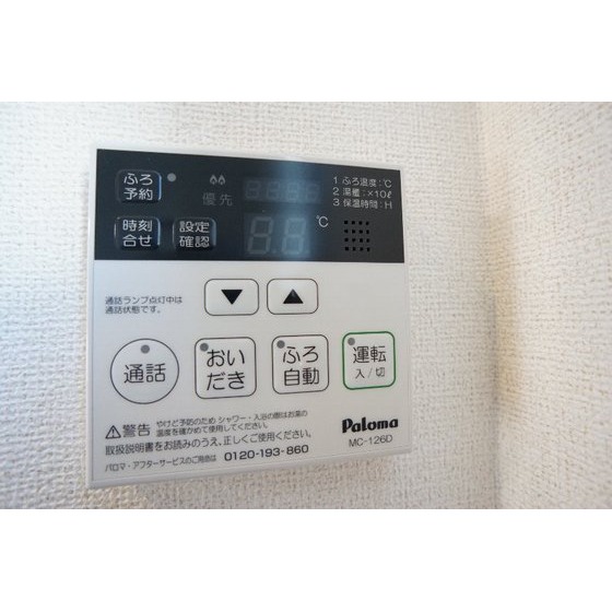 | 設備 | 室内洗濯機置場、追焚機能、シャワー、バス・トイレ別、トイレ、洗髪洗面化粧台、洗面台、温水洗浄便座、洗面所独立、浴室乾燥機、ガスコンロ付、収納スペース、ウォークインクローゼット、シューズボックス、給湯、プロパンガス、フローリング、室内物干し、エアコン、BS端子、モニタ付インターホン、防犯カメラ、サンルーム、駐輪場、上水道、下水道 | ||||