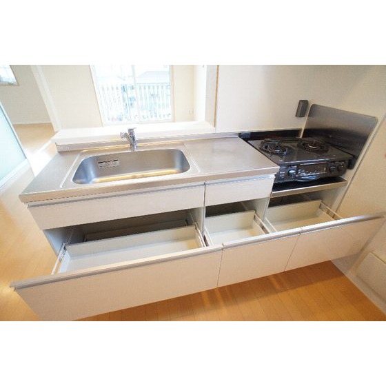 | 設備 | 室内洗濯機置場、追焚機能、シャワー、バス・トイレ別、トイレ、洗髪洗面化粧台、洗面台、温水洗浄便座、洗面所独立、カウンタキッチン、ガスコンロ付、2口コンロ、収納スペース、クローゼット、シューズボックス、照明器具、給湯、プロパンガス、複層ガラス、フローリング、室内物干し、エアコン、エアコン2台以上、モニタ付インターホン、防犯用ガラス、バルコニー、駐輪場 | ||||