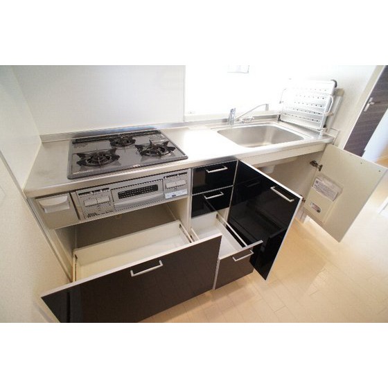 | 設備 | 室内洗濯機置場、追焚機能、シャワー、バス・トイレ別、トイレ、洗髪洗面化粧台、洗面台、温水洗浄便座、洗面所独立、カウンタキッチン、システムキッチン、ガスコンロ付、3口以上コンロ、収納スペース、ウォークインクローゼット、クローゼット、全居室収納、シューズボックス、照明器具、給湯、プロパンガス、室内物干し、エアコン、エアコン2台以上、モニタ付インターホン、防犯用ガラス、バルコニー、宅配BOX、駐輪場 | ||||