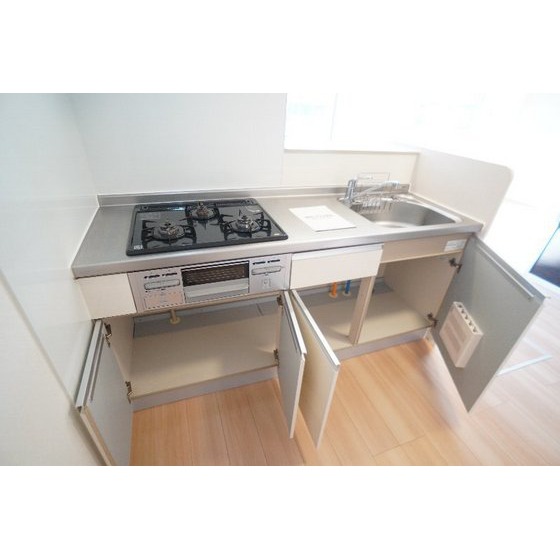 | 設備 | 室内洗濯機置場、追焚機能、シャワー、バス・トイレ別、トイレ、洗髪洗面化粧台、洗面台、温水洗浄便座、洗面所独立、浴室乾燥機、カウンタキッチン、システムキッチン、ガスコンロ付、3口以上コンロ、収納スペース、床下収納、クローゼット、シューズボックス、給湯、プロパンガス、複層ガラス、フローリング、室内物干し、エアコン、全居室エアコン、エアコン2台以上、BS端子、モニタ付インターホン、カードキー、防犯用ガラス、バルコニー、宅配BOX、駐輪場 | ||||
