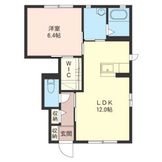 ルナヒルズ 101 1LDK【45.58㎡】 LDK:12帖 洋室:6.4帖 |
