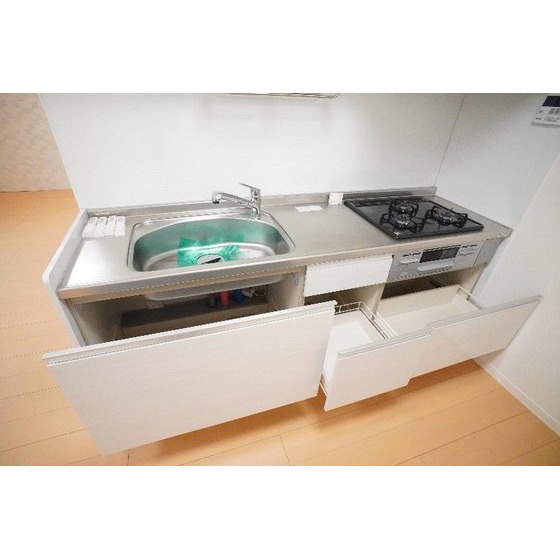 | 設備 | 室内洗濯機置場、追焚機能、シャワー、バス・トイレ別、トイレ、洗面台、温水洗浄便座、洗面所独立、浴室乾燥機、カウンタキッチン、システムキッチン、ガスコンロ付、3口以上コンロ、収納スペース、ウォークインクローゼット、クローゼット、シューズボックス、照明器具、給湯、フローリング、室内物干し、エアコン、エアコン2台以上、BS端子、オートロック、モニタ付インターホン、モニタ付オートロック、防犯用ガラス、防犯カメラ、バルコニー、駐輪場 | ||||