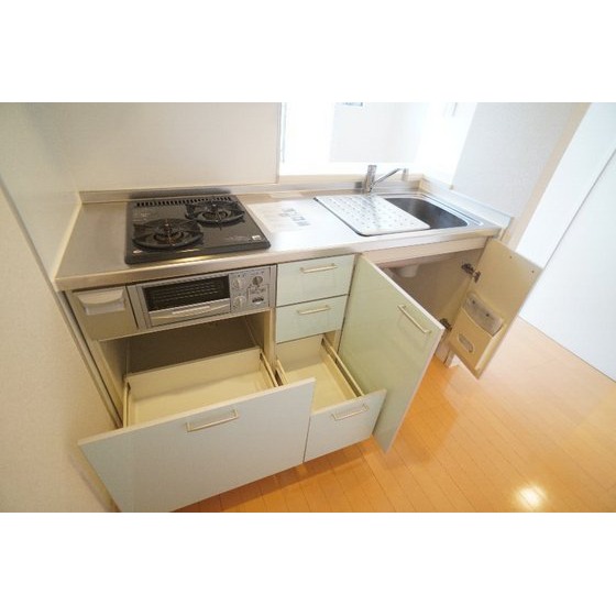 | 設備 | 室内洗濯機置場、追焚機能、シャワー、バス・トイレ別、トイレ、洗髪洗面化粧台、温水洗浄便座、洗面所独立、カウンタキッチン、システムキッチン、ガスコンロ付、2口コンロ、収納スペース、ウォークインクローゼット、シューズボックス、照明器具、給湯、プロパンガス、複層ガラス、シャッター雨戸、室内物干し、エアコン、BS端子、モニタ付インターホン、防犯用ガラス、バルコニー、駐輪場 | ||||