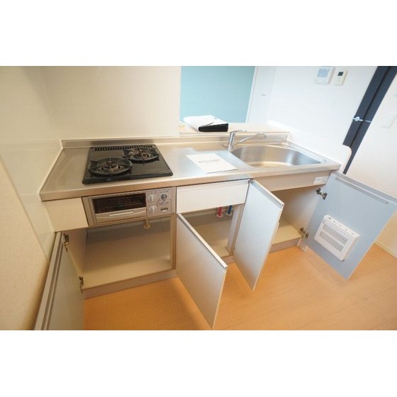 | 設備 | 室内洗濯機置場、追焚機能、シャワー、バス・トイレ別、トイレ、洗髪洗面化粧台、洗面台、温水洗浄便座、洗面所独立、浴室乾燥機、カウンタキッチン、システムキッチン、ガスコンロ付、2口コンロ、収納スペース、クローゼット、シューズボックス、給湯、プロパンガス、フローリング、室内物干し、エアコン、BS端子、オートロック、モニタ付インターホン、カードキー、防犯カメラ、バルコニー、宅配BOX、駐輪場 | ||||