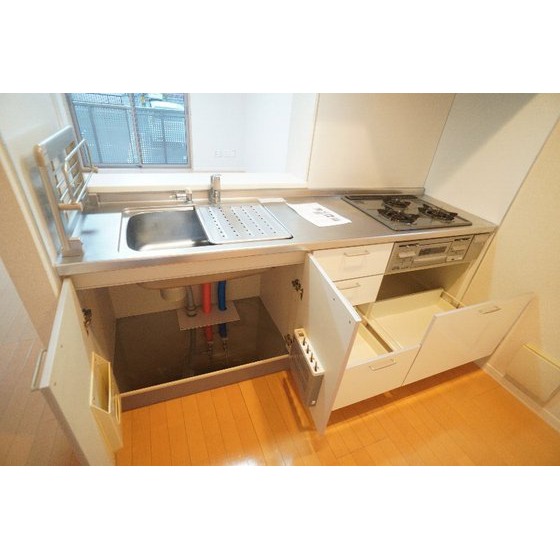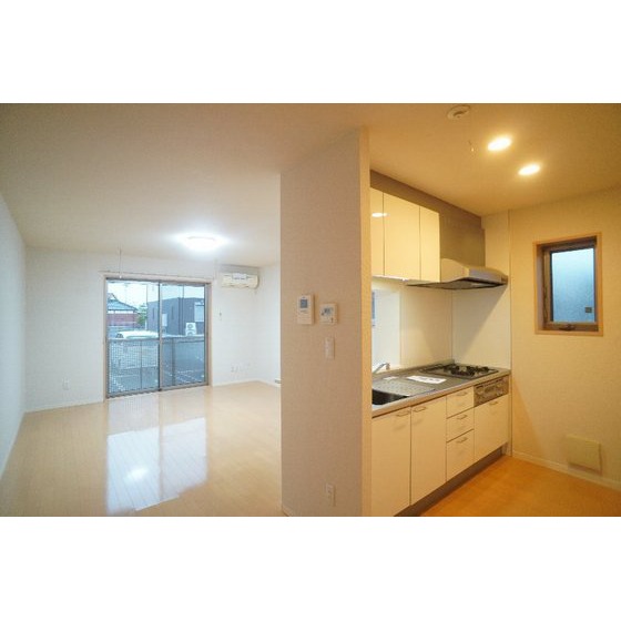 | 設備 | 室内洗濯機置場、追焚機能、シャワー、バス・トイレ別、トイレ、洗髪洗面化粧台、洗面台、温水洗浄便座、洗面所独立、カウンタキッチン、システムキッチン、ガスコンロ付、3口以上コンロ、収納スペース、クローゼット、シューズボックス、照明器具、給湯、プロパンガス、複層ガラス、シャッター雨戸、室内物干し、エアコン、BS端子、モニタ付インターホン、防犯用ガラス、バルコニー、駐輪場 | ||||