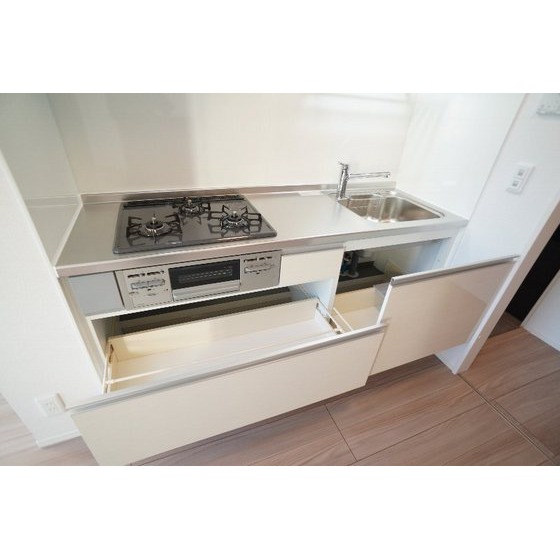 | 設備 | 室内洗濯機置場、追焚機能、シャワー、バス・トイレ別、トイレ、洗髪洗面化粧台、洗面台、温水洗浄便座、洗面所独立、浴室乾燥機、システムキッチン、ガスコンロ付、3口以上コンロ、収納スペース、クローゼット、シューズボックス、給湯、都市ガス、複層ガラス、フローリング、シャッター雨戸、室内物干し、エアコン、BS端子、オートロック、モニタ付インターホン、カードキー、モニタ付オートロック、防犯カメラ、バルコニー、宅配BOX、駐輪場 | ||||