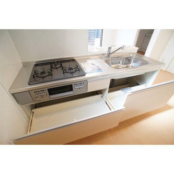 | 設備 | 室内洗濯機置場、追焚機能、シャワー、バス・トイレ別、トイレ、洗髪洗面化粧台、洗面台、温水洗浄便座、洗面所独立、カウンタキッチン、システムキッチン、ガスコンロ付、3口以上コンロ、収納スペース、ウォークインクローゼット、クローゼット、シューズボックス、照明器具、給湯、プロパンガス、室内物干し、エアコン、エアコン2台以上、全居室エアコン、オートロック、モニタ付インターホン、モニタ付オートロック、防犯カメラ、バルコニー、駐輪場 | ||||