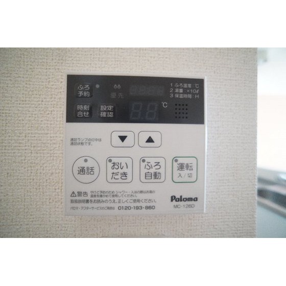 | 設備 | 室内洗濯機置場、追焚機能、シャワー、バス・トイレ別、トイレ、洗髪洗面化粧台、洗面台、温水洗浄便座、洗面所独立、浴室乾燥機、ガスコンロ可、カウンタキッチン、収納スペース、床下収納、ウォークインクローゼット、シューズボックス、給湯、プロパンガス、複層ガラス、フローリング、シャッター雨戸、室内物干し、エアコン、エアコン2台以上、全居室エアコン、BS端子、モニタ付インターホン、バルコニー、駐輪場、上水道、下水道 | ||||