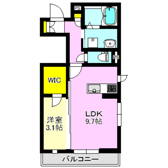 グランコンフォート 201 1SK【37.75㎡】 K:9.7帖 洋室:3.1帖 |