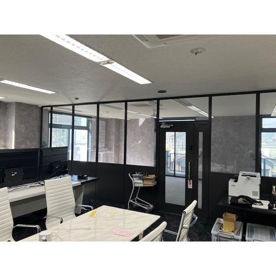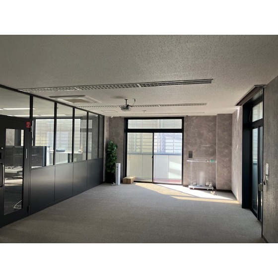 | 備考 | 共同トイレあり(男女別)、共同給湯室あり、共益費にトイレ、給湯室、エレベーターの電気代・ガス代・水道代込み。※室内のパーテーション(黒)は無くなります。 | ||||